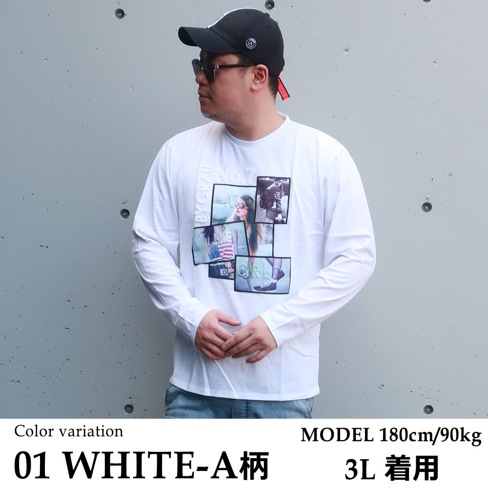 【送料無料】 メンズ 大きいサイズ Tシャツ 長袖 3L 4L XXL XXXL ロンT プリント 丸首 vネック クルーネック ビックサイズ キングサイズ ガールズ エンボス ロゴ 黒 白 ブラック ホワイト アメカジ ストリート 大人 30代 40代 50代